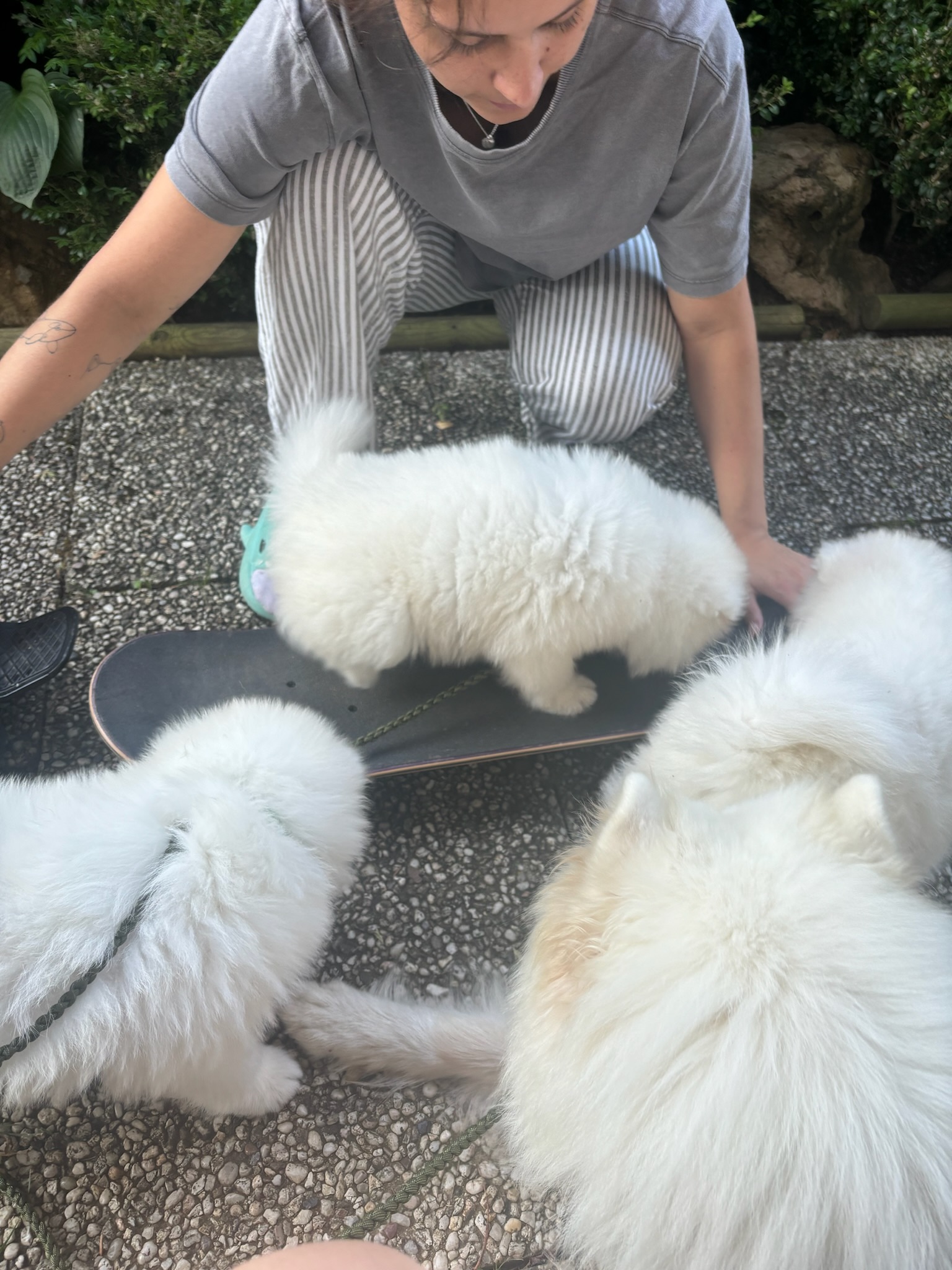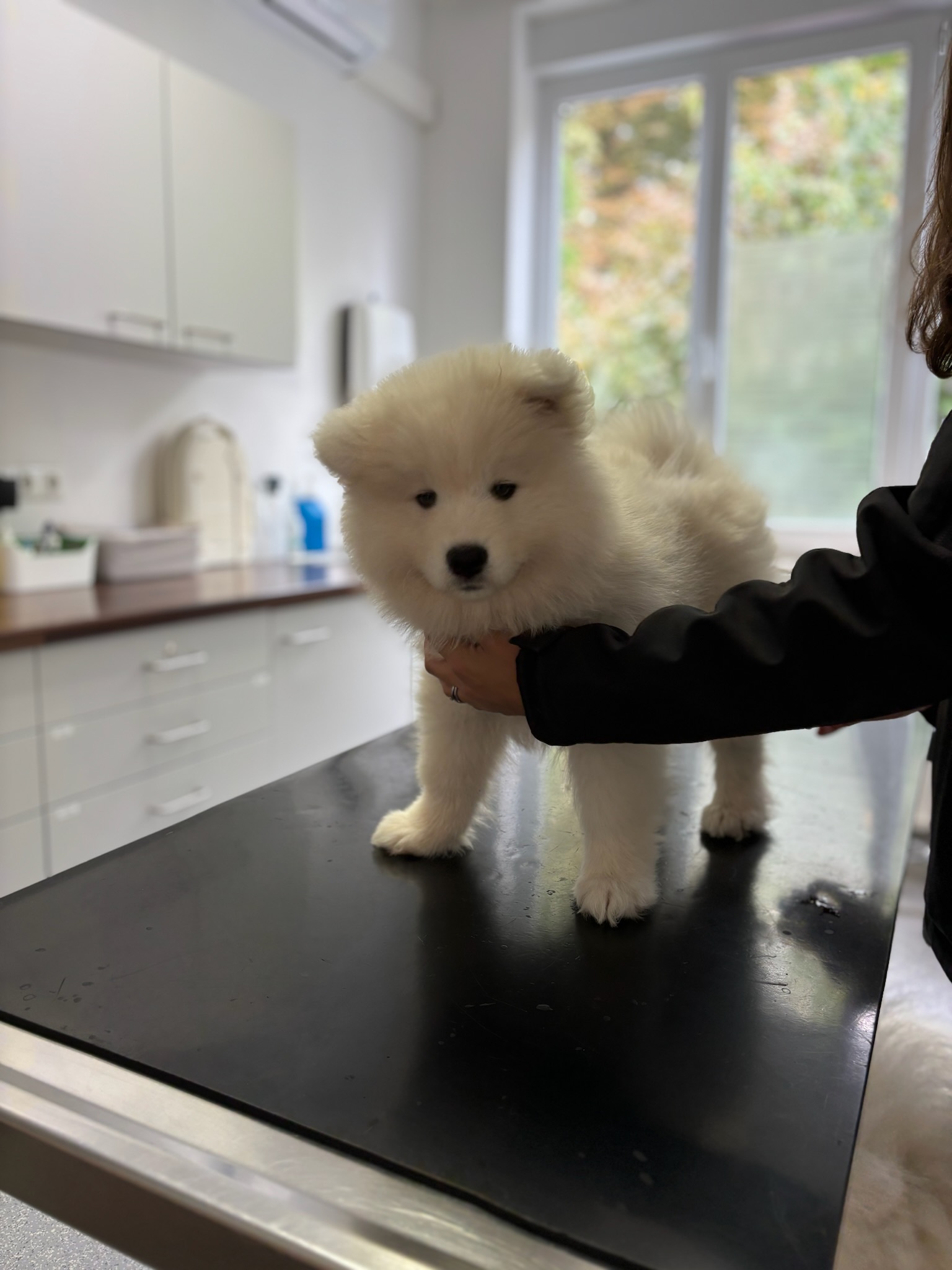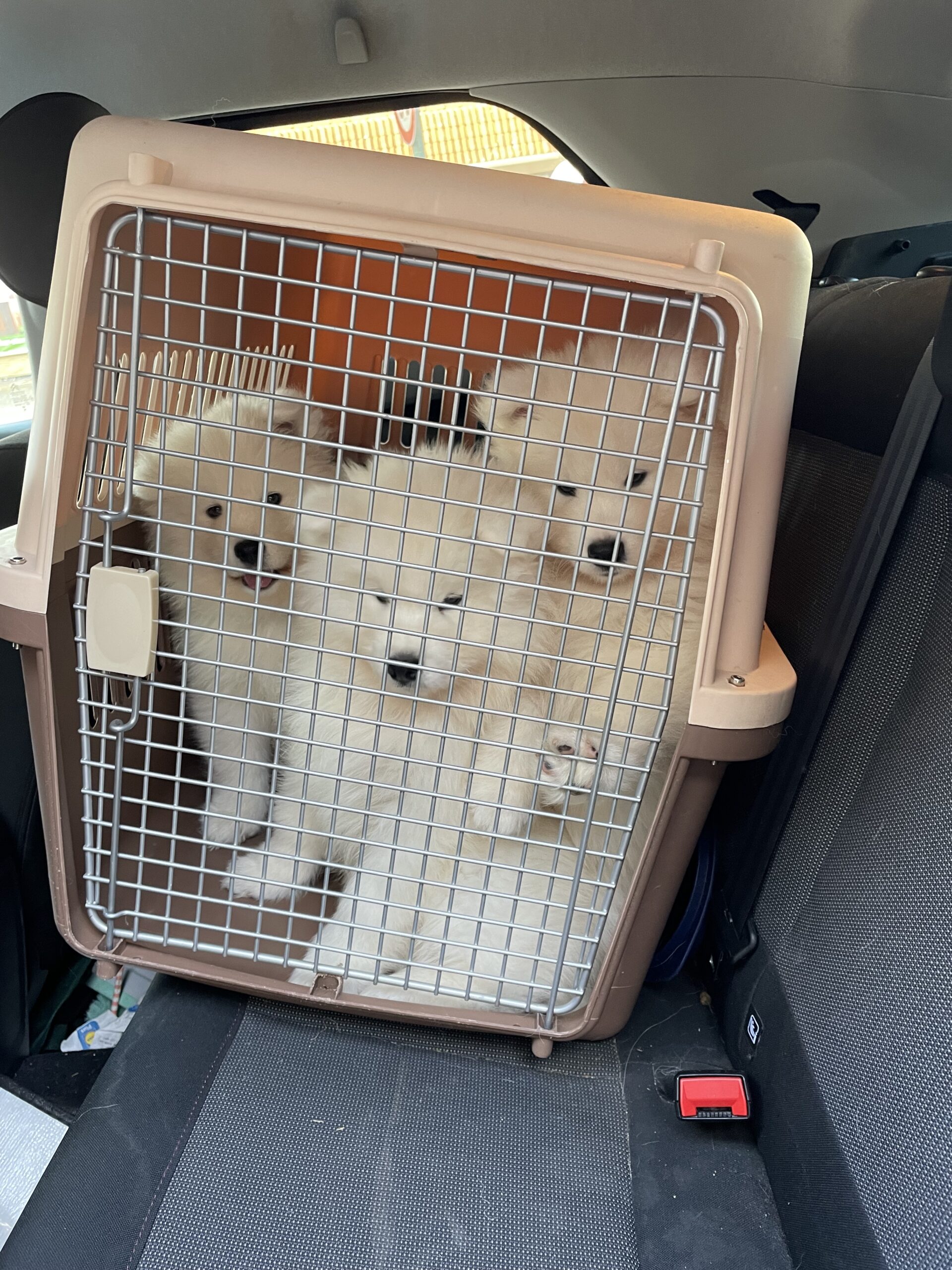 Auch weitere Grundlagen werden früh gelegt. Die Welpen lernen Wasser kennen, tragen ein Halsband, machen erste kurze Erfahrungen an der Leine und lernen den Tierarzt kennen, ohne dass etwas Negatives passiert. Alles passiert altersgerecht, ruhig und ohne Druck. Wir nehmen hier auch die Interessen der neuen Besitzer auf und üben so frühzeitig das Autofahren und ggf. auch Bahnfahren oder ähnliches.